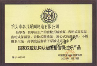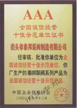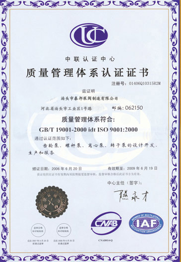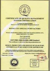 ISO9001質(zhì)量管理體系證書英 質(zhì)量承諾信譽(yù)單位證書 特種泵設(shè)備制造許可證書