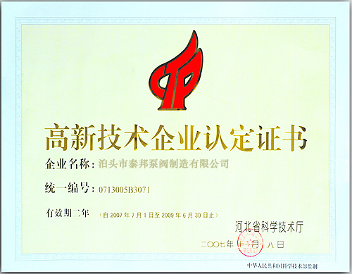 河北誠(chéng)信企業(yè) 高新技術(shù)認(rèn)定書 國(guó)家權(quán)威認(rèn)證