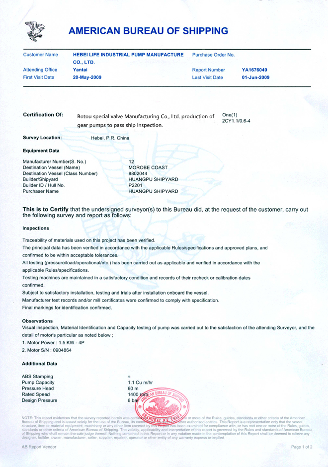 國(guó)際質(zhì)量體系認(rèn)證證書 ABS認(rèn)證證書 法國(guó)船級(jí)社質(zhì)量體系認(rèn)證證書