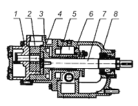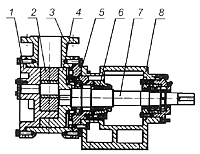 1.前蓋 2.內(nèi)轉(zhuǎn)子 3.泵體 4.外轉(zhuǎn)子 5.滑動(dòng)軸承或滾動(dòng)軸承 6.填料密封或機(jī)械密封 7.主軸 8.托架 |